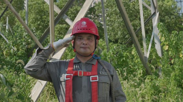 (国网岳阳输电检修公司孙夫龙面对镜头敬军礼。)