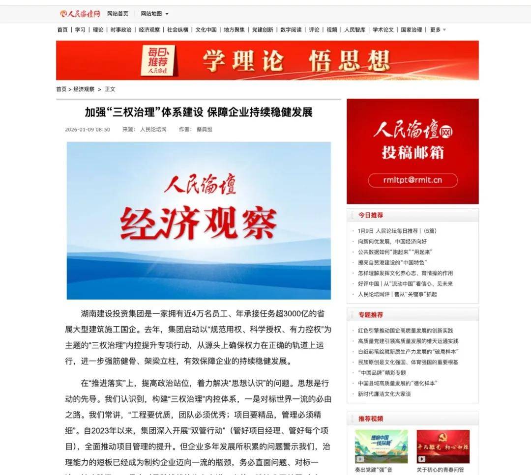 1月9日,人民日报社主管、中央主要新闻网站、中央重点理论网站《人民论坛》刊发中央党校厅局级干部进修班第95期学员、湖南建设投资集团党委书记、董事长蔡典维同志个人理论文章。现将原文转发,供大家学习交流。