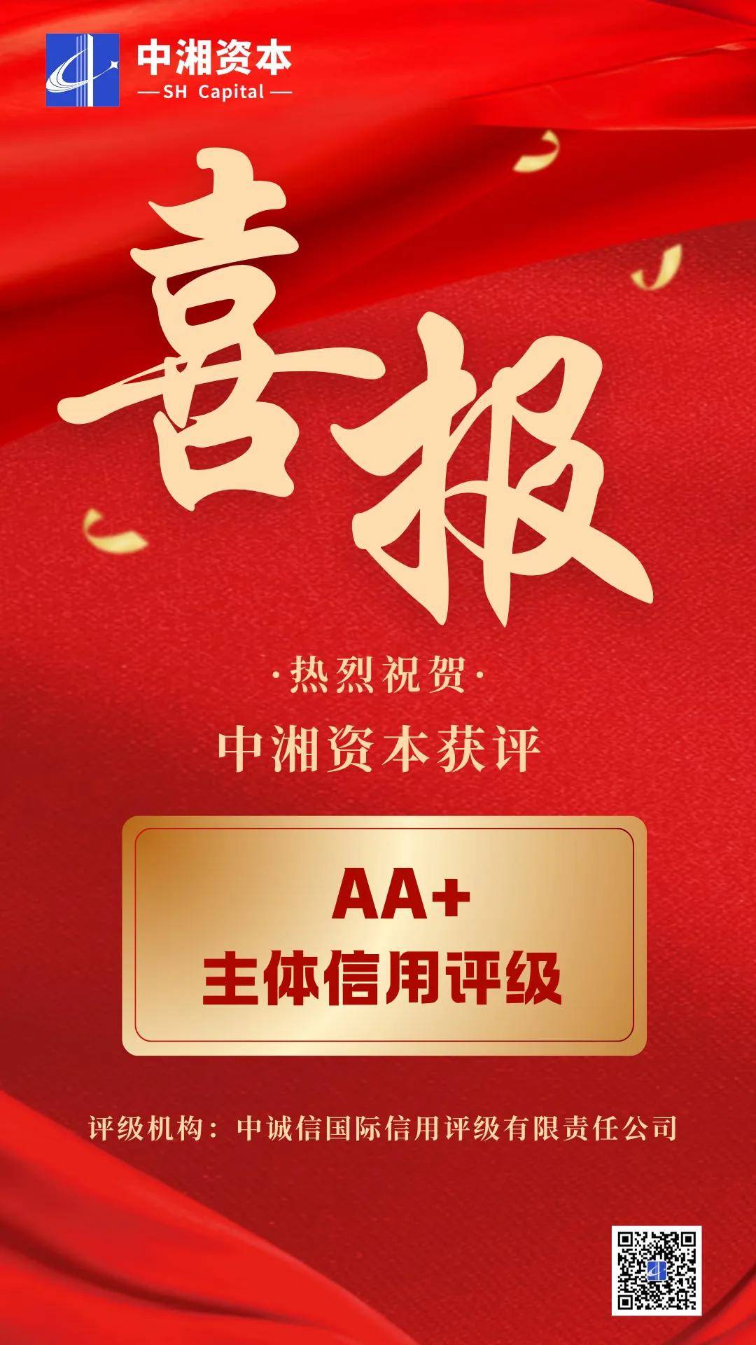 中湘资本获评AA+主体信用评级,金融支持主业发展迈上新台阶