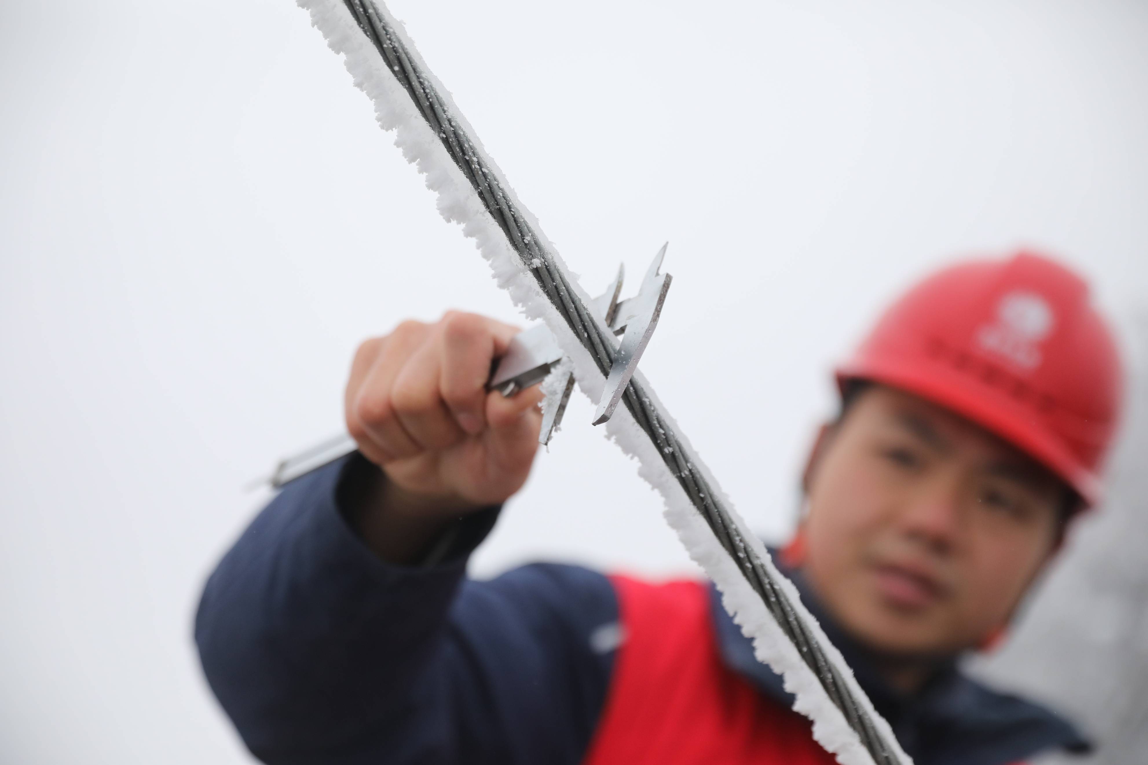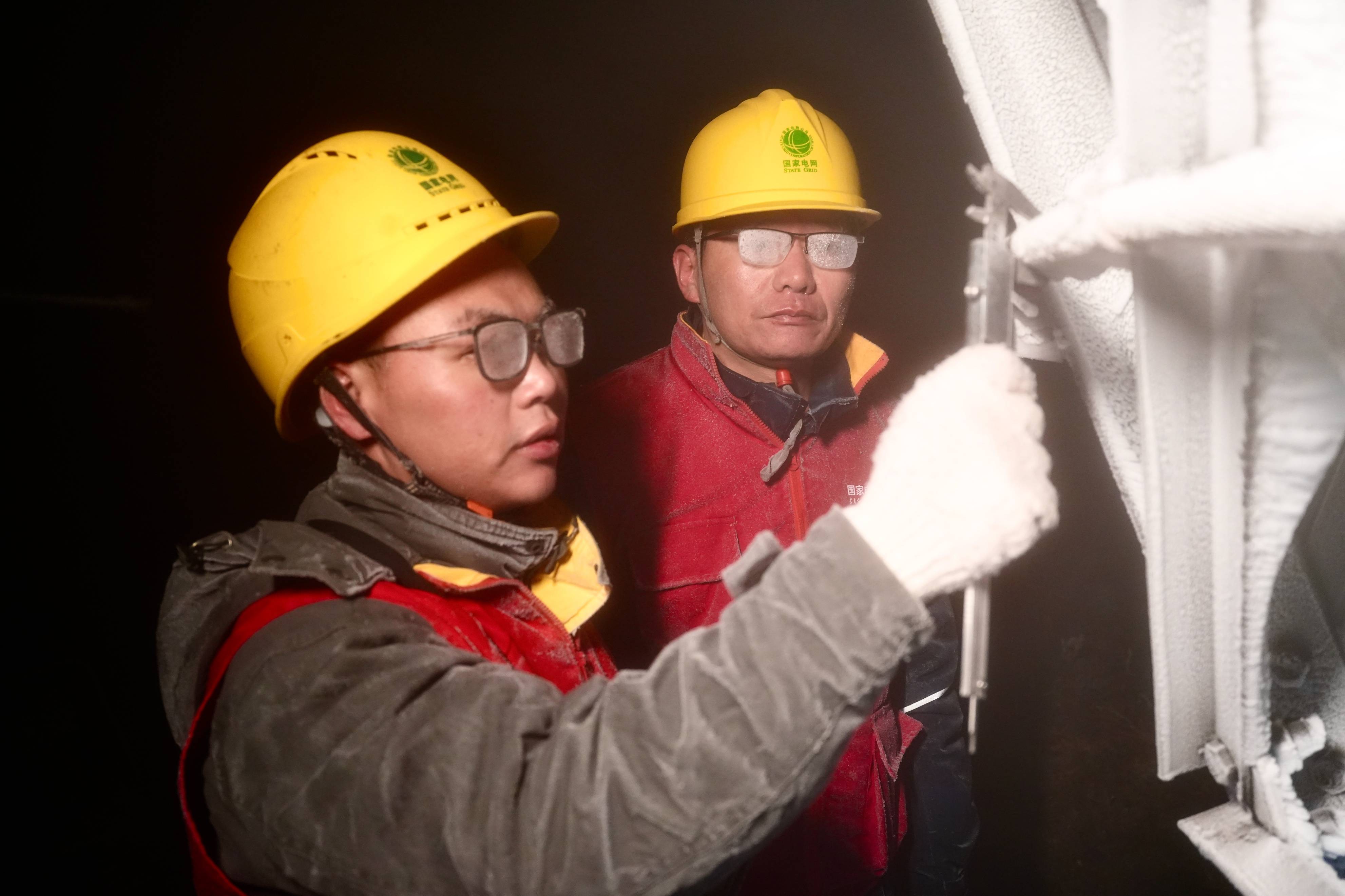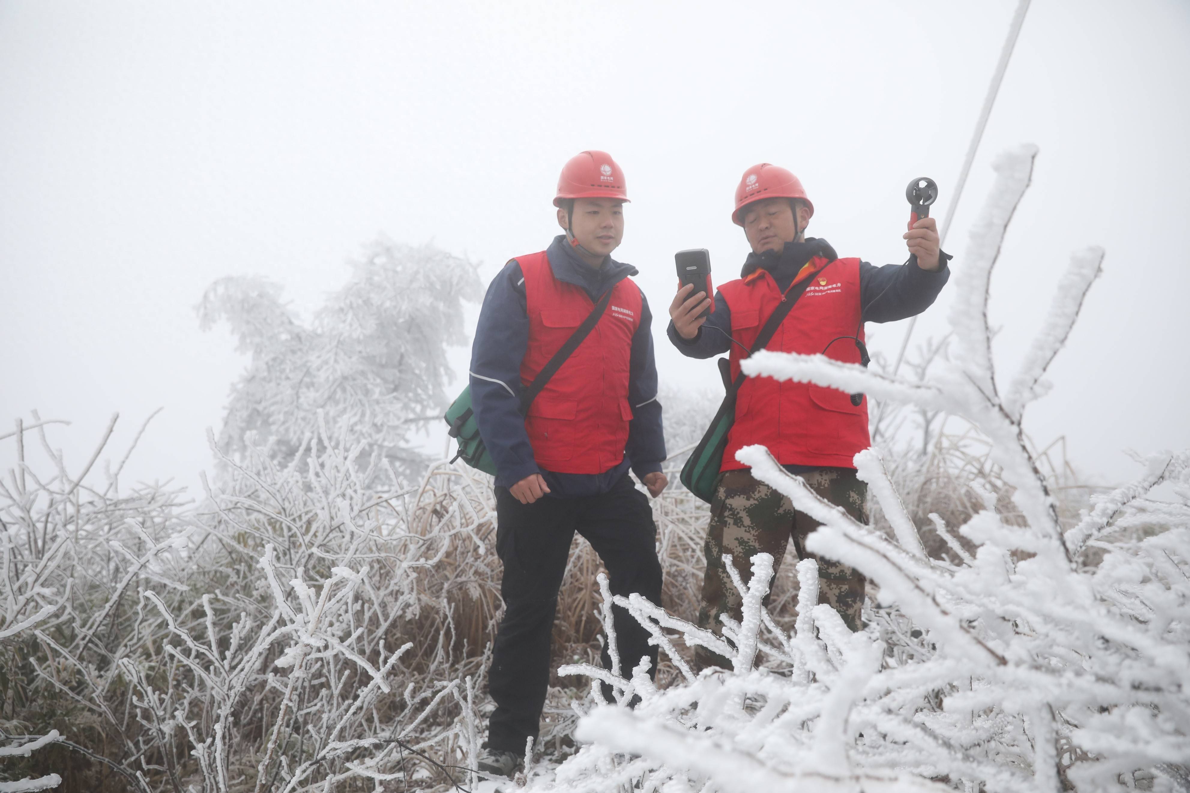 在湘南常宁的天堂山巅,供电员工迎着能见度不足5米的风雪,六次往返110千伏线路监测点,精准监测覆冰并及时启动直流融冰,保障了风电外送通道安全。