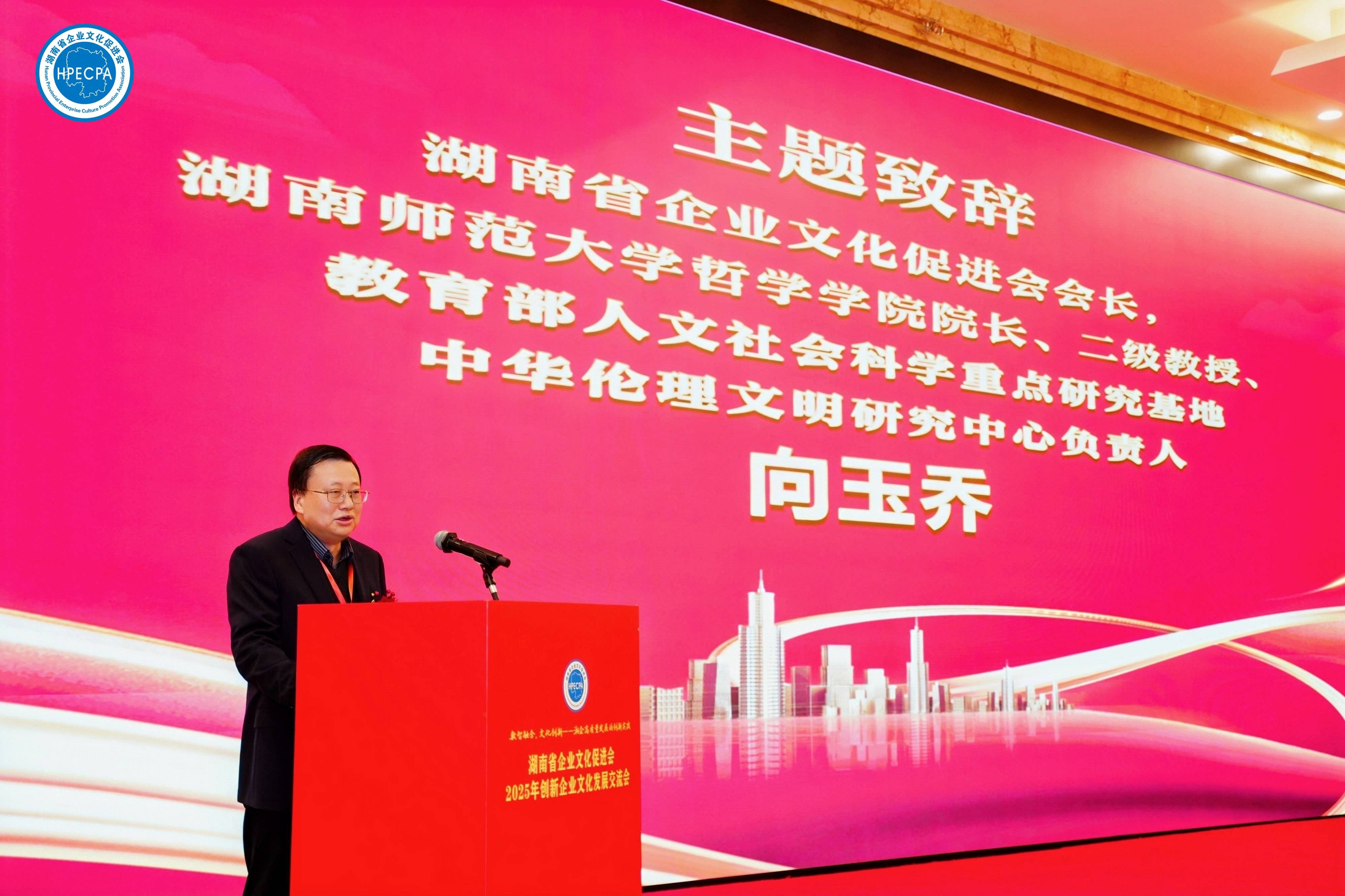 ▲湖南省企业文化促进会会长、湖南师范大学哲学学院院长向玉乔致辞