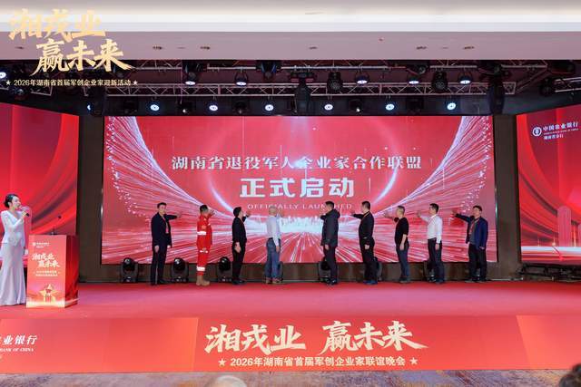 本网讯(通讯员:刘明)春潮涌动湘江岸,戎装卸甲再扬帆。2026年2月3日,以“湘戎业 赢未来”为主题的2026年湖南省首届军创企业家迎新活动在长沙隆重举行。活动聚焦退役军人创业赋能与资源协同,搭建政企银多方对接桥梁,为湖南军创事业高质量发展注入强劲动能,凝聚起“戎心筑梦、聚力兴湘”的磅礴力量。