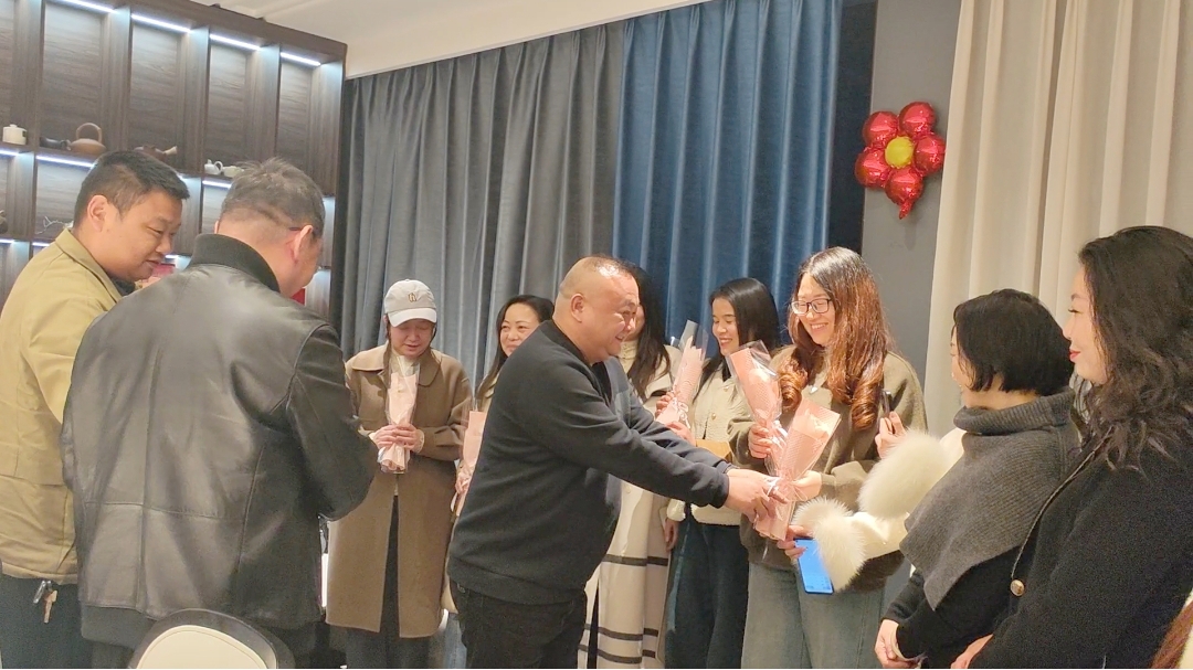 活动伊始,现场暖意涌动、花香袭人。谢建军会长与刘迎秘书长一同为到场的各位“女神”敬献鲜花,送上节日的美好祝福。娇艳的鲜花映衬着灿烂的笑容,真挚的问候传递着浓浓温情,现场掌声阵阵,暖意融融。