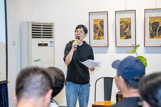 開幕式上,中國人民大學美學與現代藝術研究所研究員張成源發言提出,印庵先生作為當代書畫家,其作品融合了傳統筆墨精神與現代審美意趣,展現出深厚的藝術造詣。他的創作在筆墨關繫、用色技法、書法功力以及意境表達上均有獨到之處,強調「以書入畫」,線條流暢而富有節奏感。使畫面虛實相生,氣韻生動。他的作品常帶有禪意,如「色即是空,空即是色」的哲學思考,這與宋代禪宗詩僧釋印肅的「色空不異體還同」一脈相承。他的山水畫中,雲霧繚繞、山石隱現,頗有「無畫處皆成妙境」的禪宗美學特徵。印庵先生的藝術,既紮根於傳統文人畫的筆墨體繫,又融入了現代審美意識。他汲取陸儼少的雲水變幻、石魯的雄強剛健,並結合禪宗哲學,使作品在技法與意境上均達到較高水準。其全面性、創新性及深厚的文化底蘊,使其成為當代書畫界值得關註的重要藝術家。