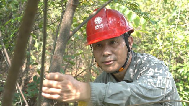 (7月28日,国网岳阳输电检修公司崔岳新对220千伏昆文Ⅱ线的树竹障碍进行清理。)